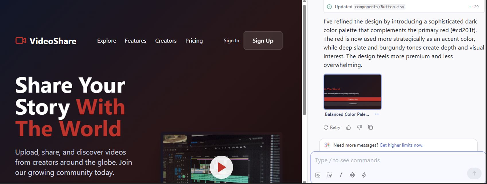 If initial elements don't look great, use the /Polish command to refine them. For example, if a color is too overpowering, you can ask the AI to tone it down.
